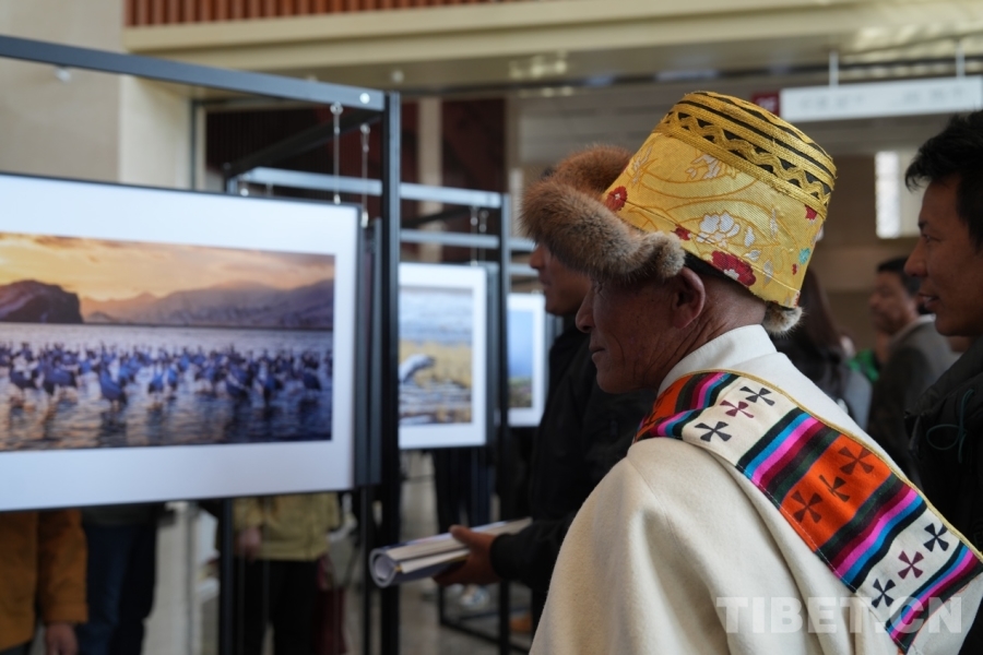 开幕式后,嘉宾们参观了摄影展,近距离欣赏黑颈鹤与雪山、湖泊、草原共生共荣的美好瞬间,感悟西藏生态与人文的和谐之美。(中国西藏网 记者/德吉卓玛 旦曲)